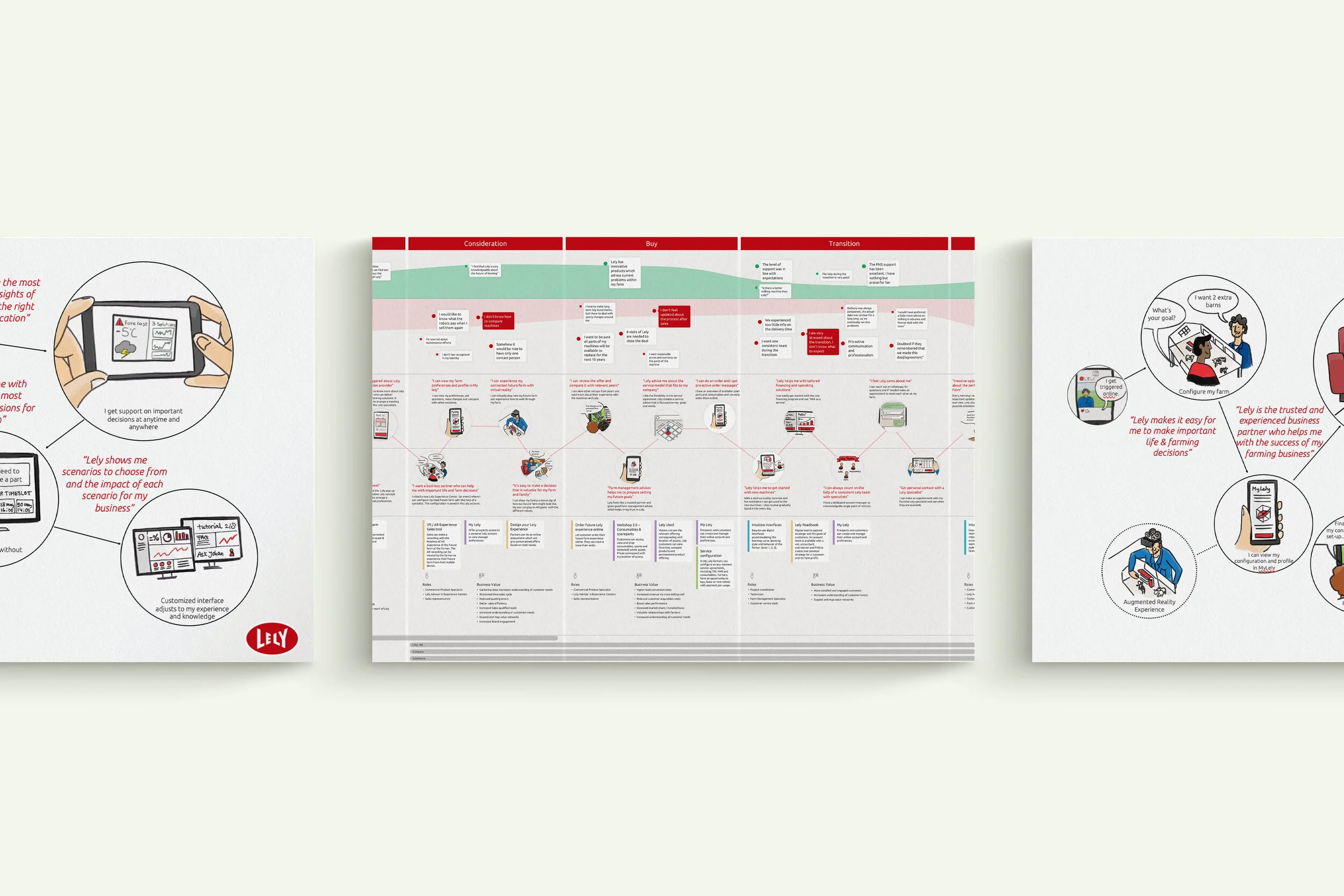 The design challenge: How should Lely’s channels & touch points (online & offline) for sales, support and operations align to facilitate a consistent and user friendly experience? My role in this project was to conduct interviews with internal stakeholders and customers. I also visited different types of farms in the Netherlands for a contextual inquiry. The insights from research were presented in an Experience Map that reflected the current ‘'flaws’' in the customer experience and the desired experience including the services, interactions and systems that are needed to build the desired customer experience. The Experience Map served as an important overview for the internal roadmap for the future. If you want to know more details about the background of this project, drop me a line :)