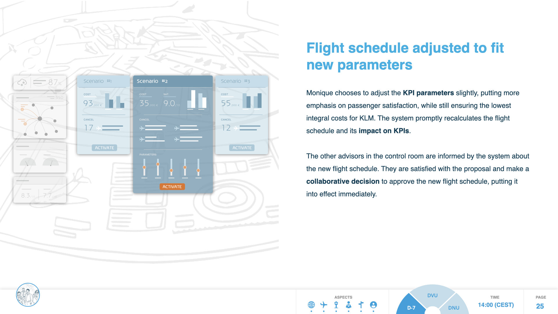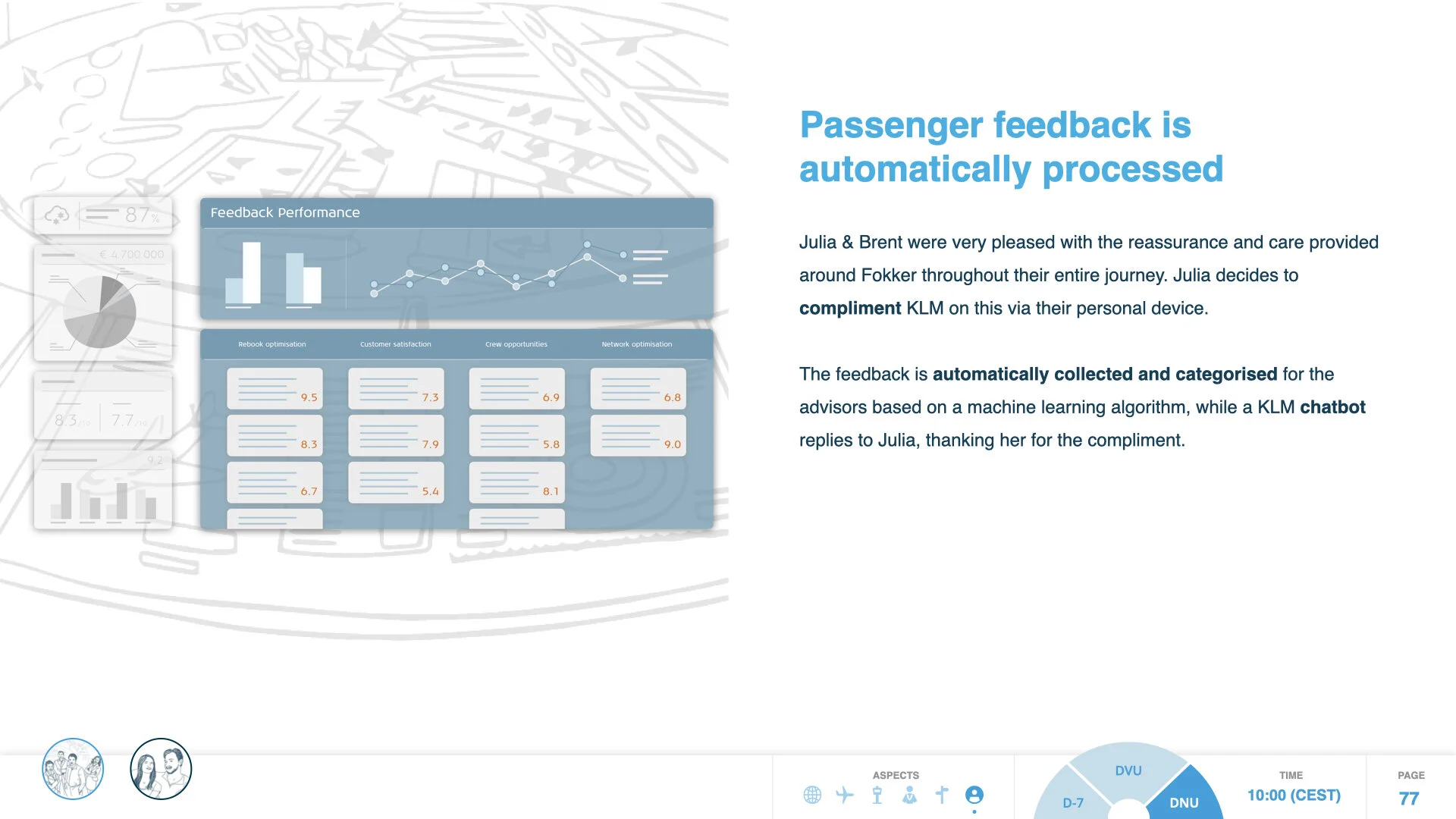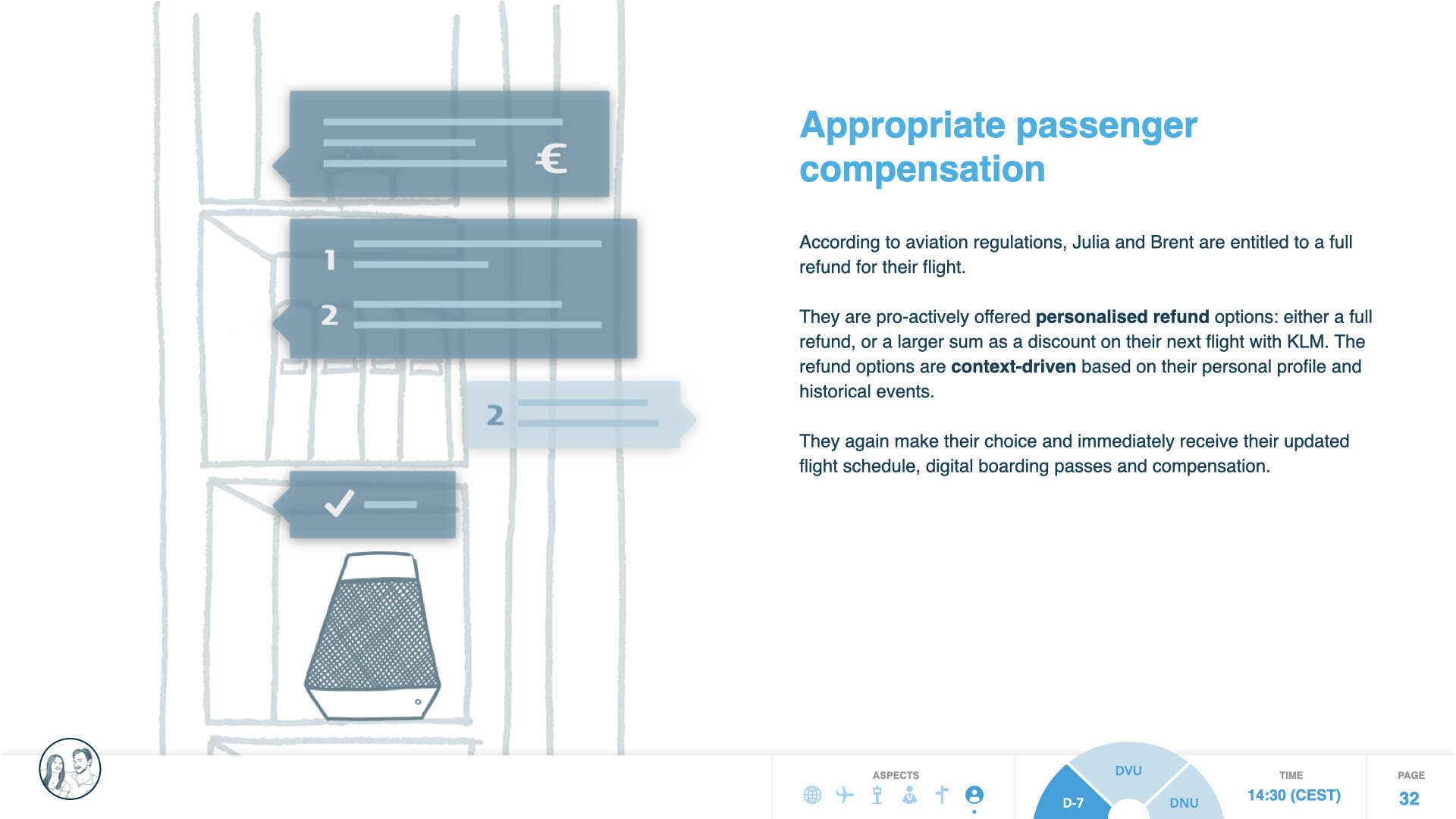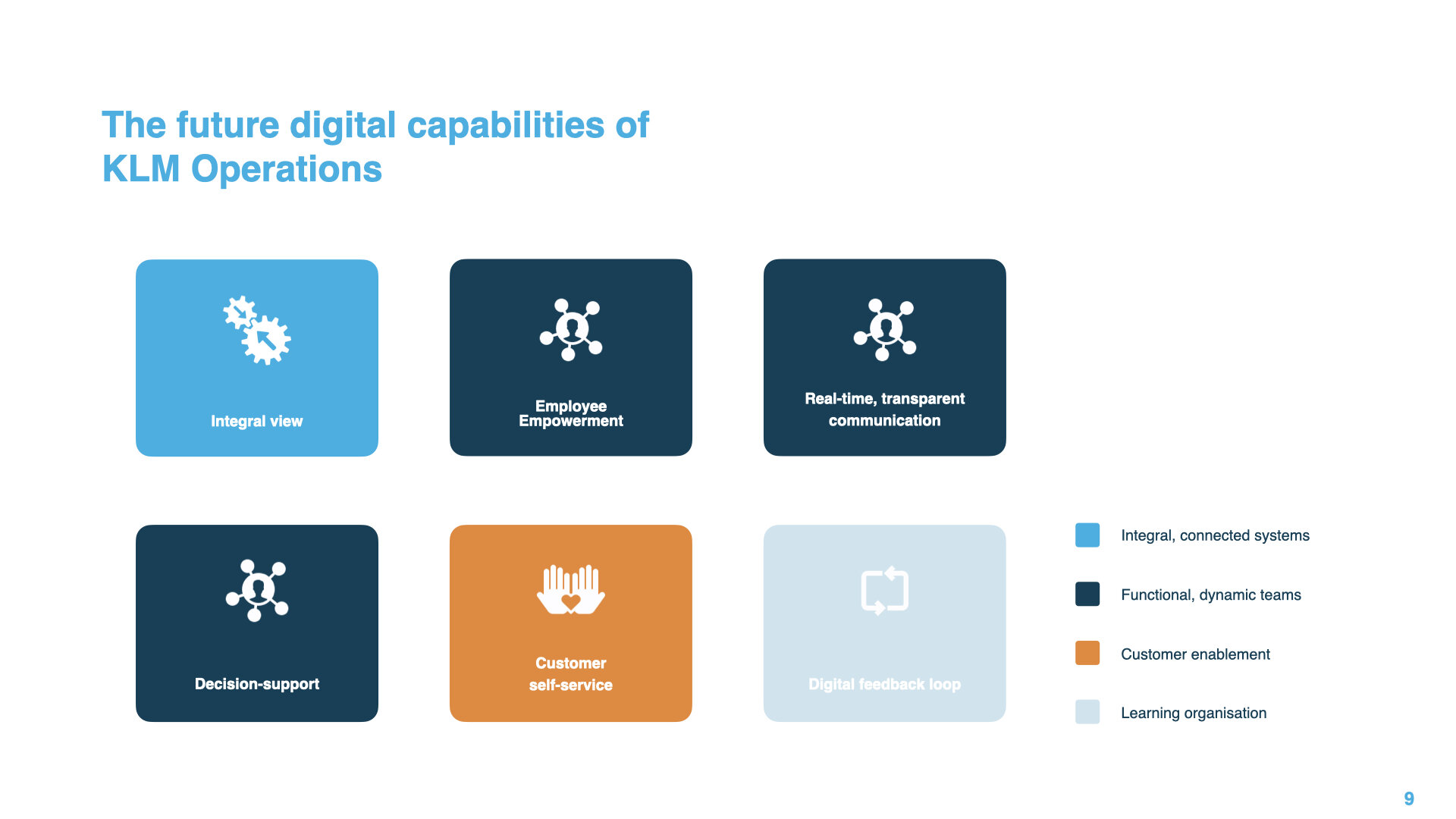 In a fast changing technology-driven world and competitive industry, Airline operations need to transform to deal with the increased complexity of ever growing number of flights and passengers. To move forward, it is important to have a shared understanding of the vision of KLM Operation Control and how we can use this to shape this transformation. Through extensive research we gathered information about all aspects op operation control and its dynamic pace. We created a holistic overview of opportunity areas by mapping current initiatives within KLM to create a connection how to use data to make faster and better decisions within KLM Operations Control.